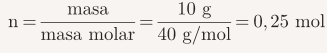 Masa molar de NaOH 40 g/mol