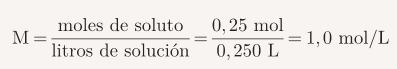 • Volumen de solución: 250 mL = 0,250 L