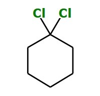 • Análisis: Observa el anillo de ciclohexano. En el carbono 1, tenemos dos átomos de cloro.